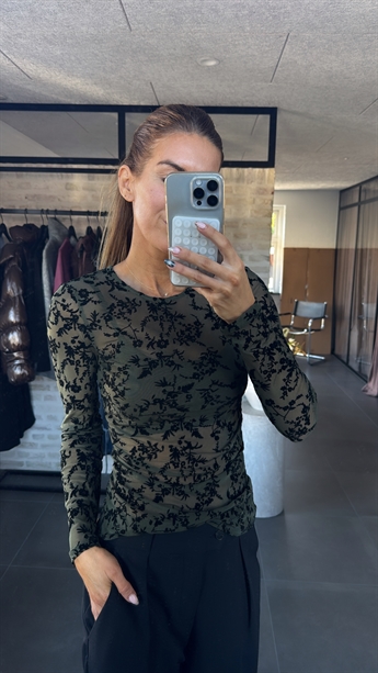 Toppen har lange ærmer, rund halsudskæring og et let, elegant materiale, der giver en behagelig pasform og et tidløst look.