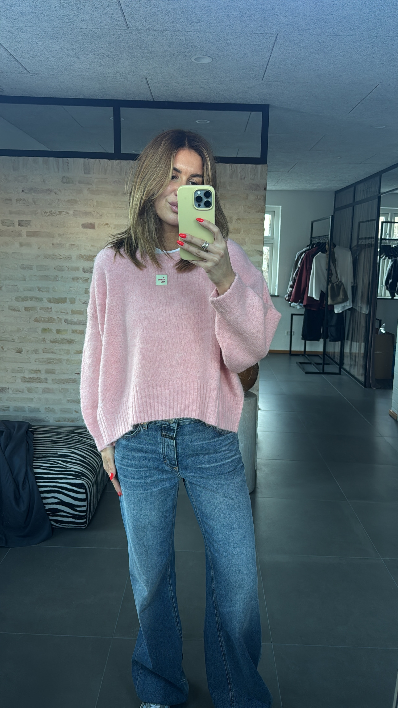 Denne strik har en løs pasform og kommer i den smukkeste lyserøde nuance med logo detalje.