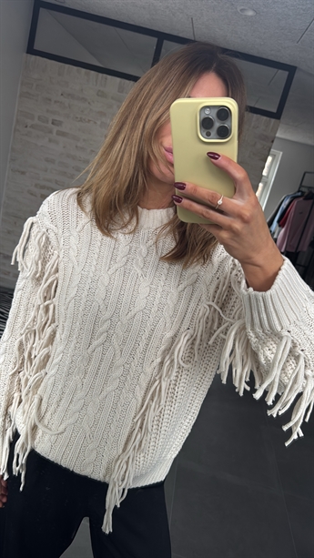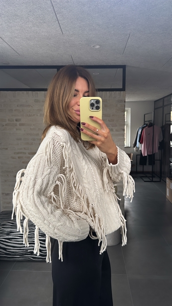 Det her er nok én af sæsonens sejeste strik! I lækker bløs bomuldskvalitet og seje frynsedetaljer.