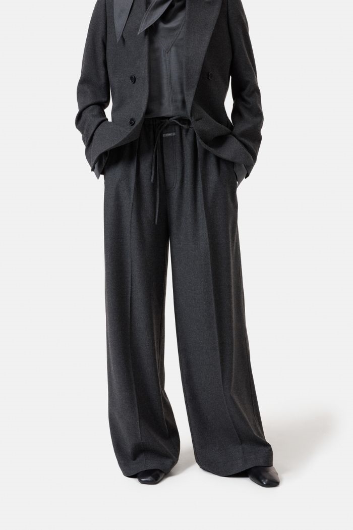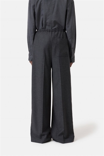 Wynston er brede bukser i en blød, transseasonal italiensk flannel med elegant twill-struktur. Stoffet har en smidig drapering takket være viscoseindholdet, og den lette stretch sikrer komfort hele dagen.
