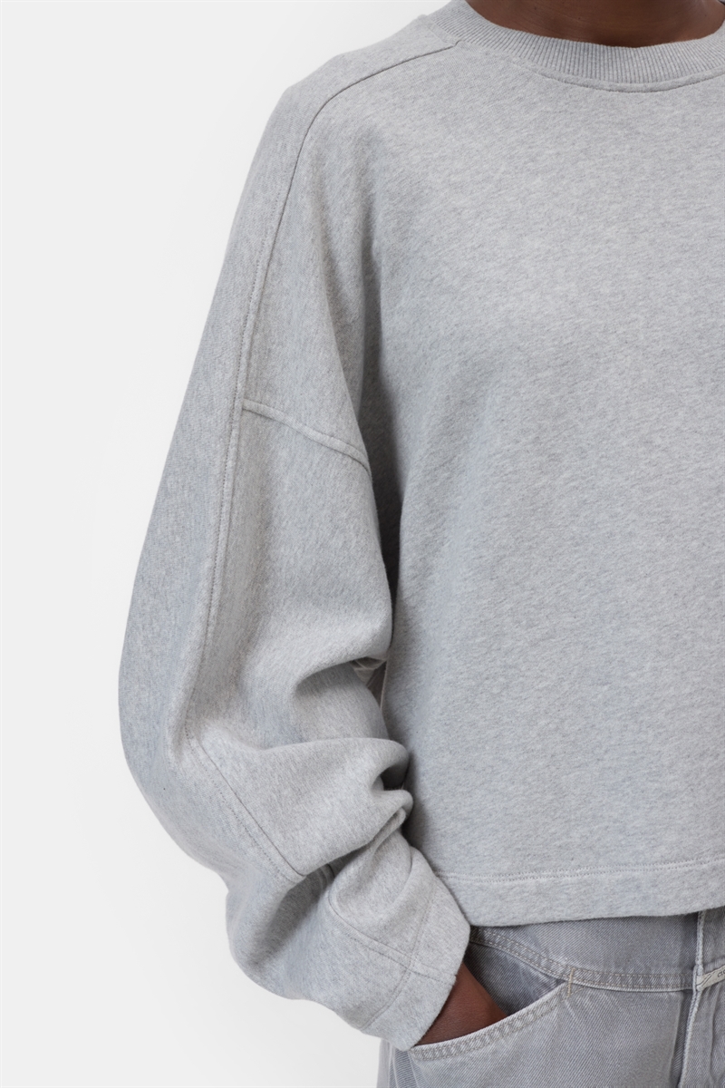 Sweatshirten har en  oversized / loose pasform og vidde ærmer, som gør den perfekt til styling over dine løse bukser, jeans, eller nederdel / kjole.