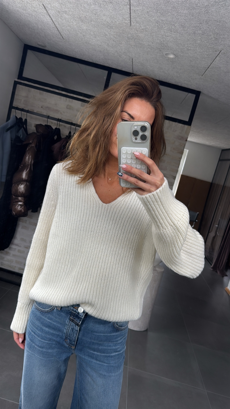 Closed, C96278, V- Neck Long Sleeve, Ivory