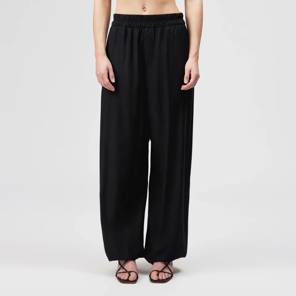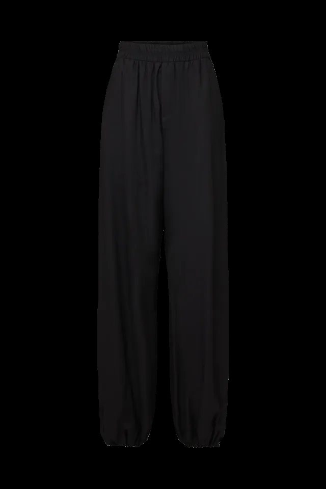 EITHER er bukser med elastikbånd og ballonsømme, hvor sømmanschetterne er foldet indad og fastgjort med en trykknap. Den komfortable pasform samt den højkvalitets forarbejdning af en viskose-blanding gør dem ideelle til enhver lejlighed.