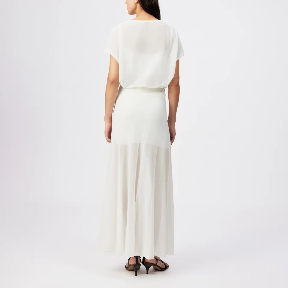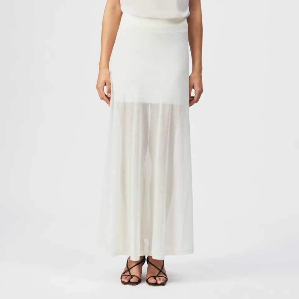 TENSYA_2 er en flagrende nederdel i maxi-længde med klassisk pasform. Den fine strik i bomuldsblanding giver nederdelen et blødt fald og et mat look.