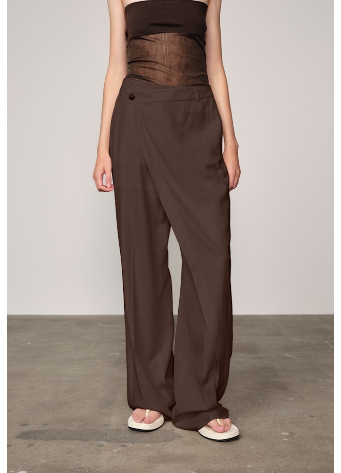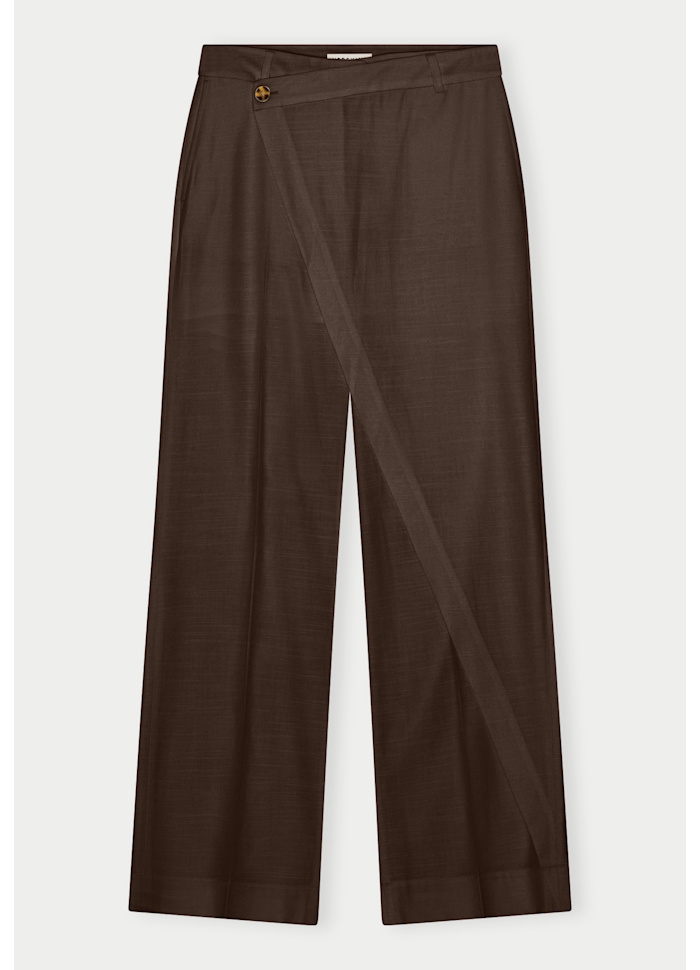 Det unikke asymmetriske stoflag foran, som lukkes med en knap i taljen, tilføjer et ekstra lag kant og gør Alina Pants til et standout-piece i garderoben.