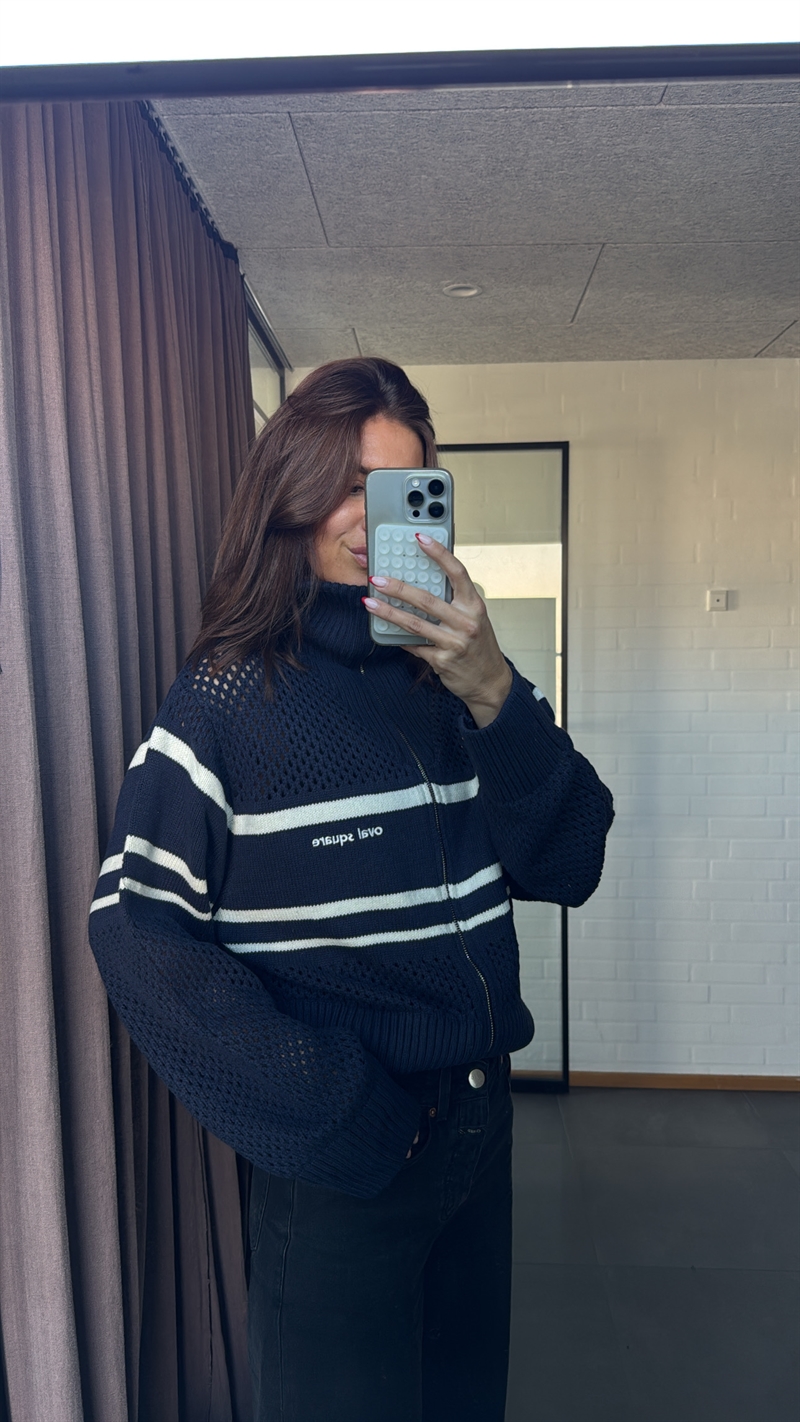 Oval Square, Snow Zip Cardigan, Dark Navy