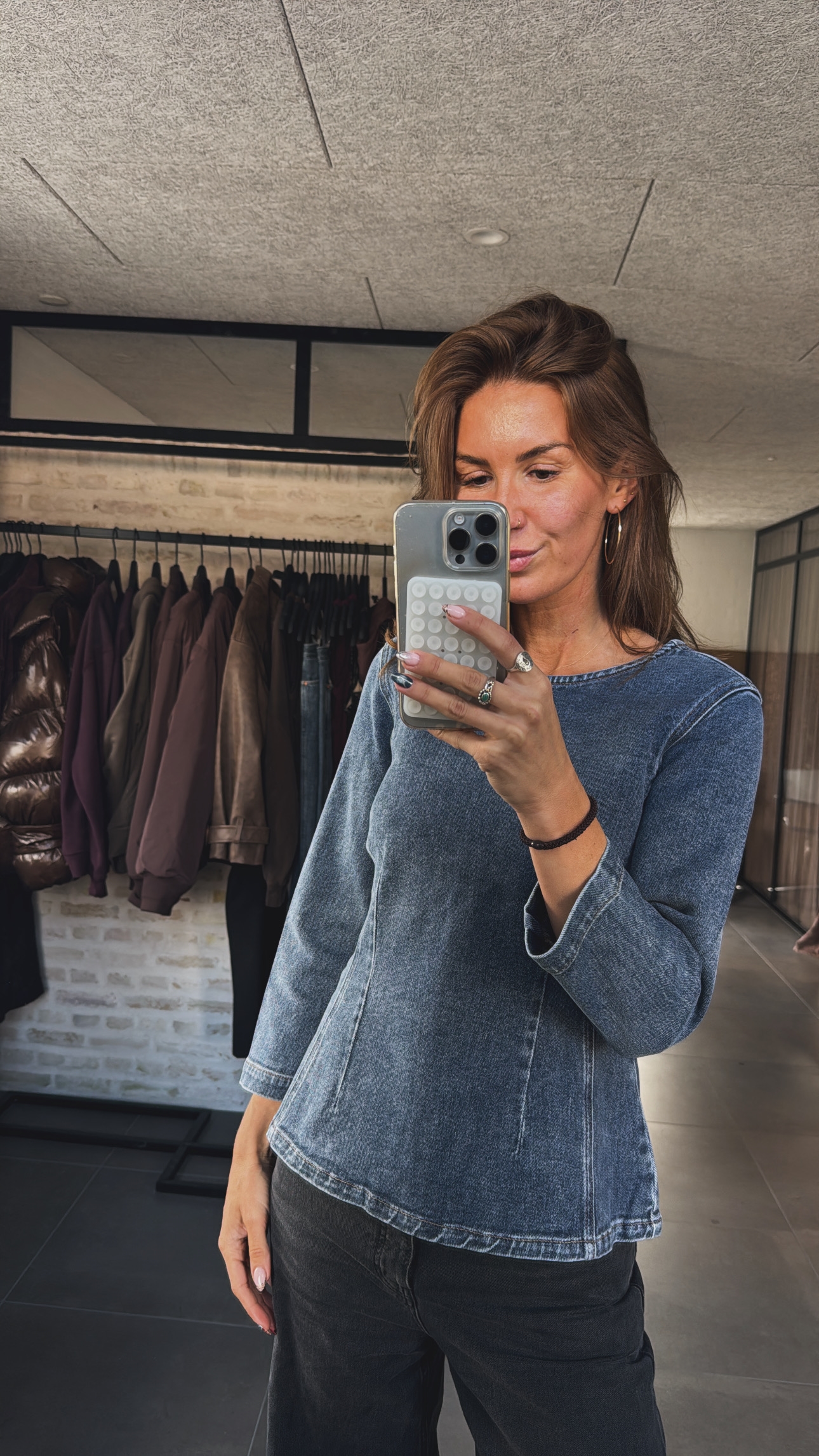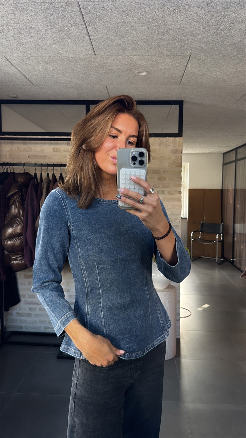 PRE-ORDER! (Levering midt uge 41) Rosa, Sculpture Top, Medium Blue Denim