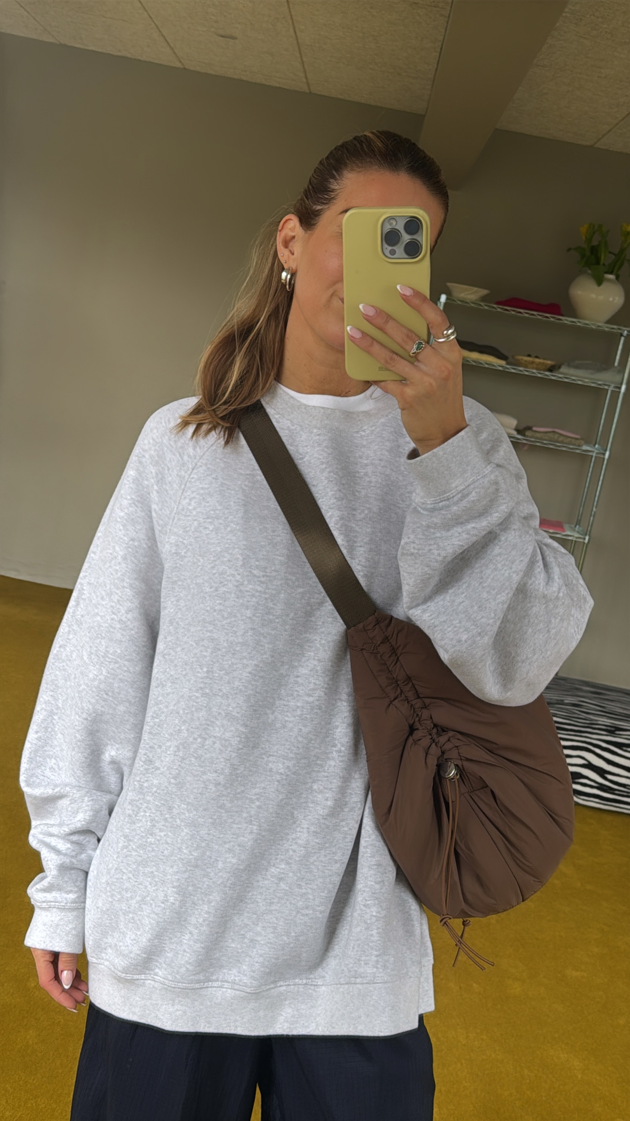 Tasken har ét stort rum og to små lommer indvendigt (med plads til din telefon, så du har den lige ved hånden)