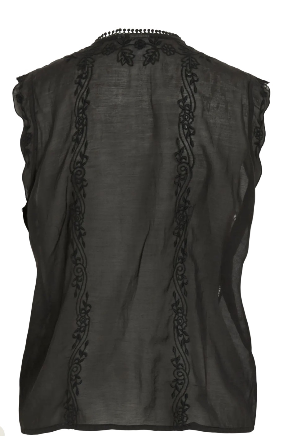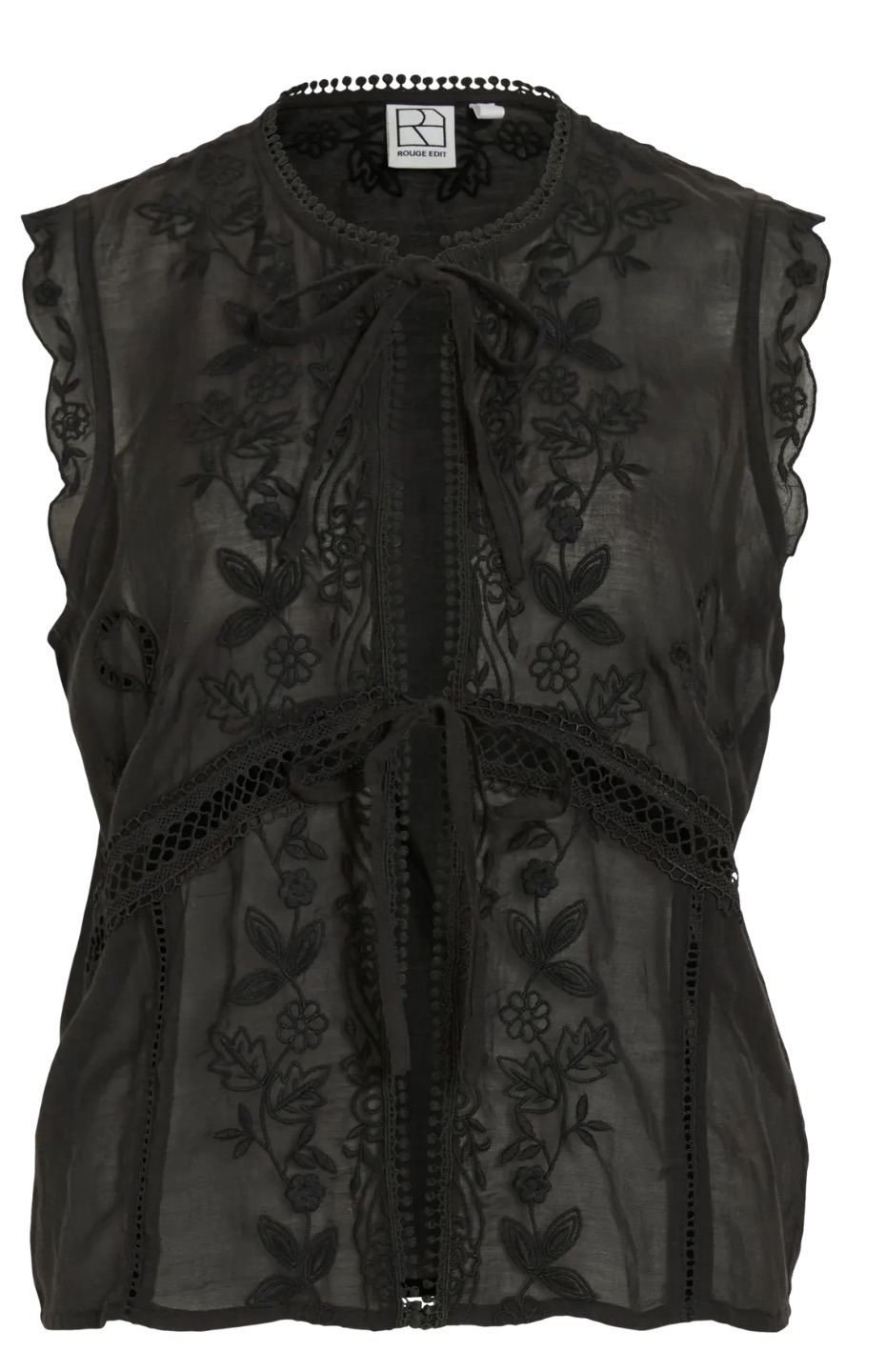Toppen har de smukkeste broderi detaljer og bindebånd, som giver toppen et super feminint udtryk.