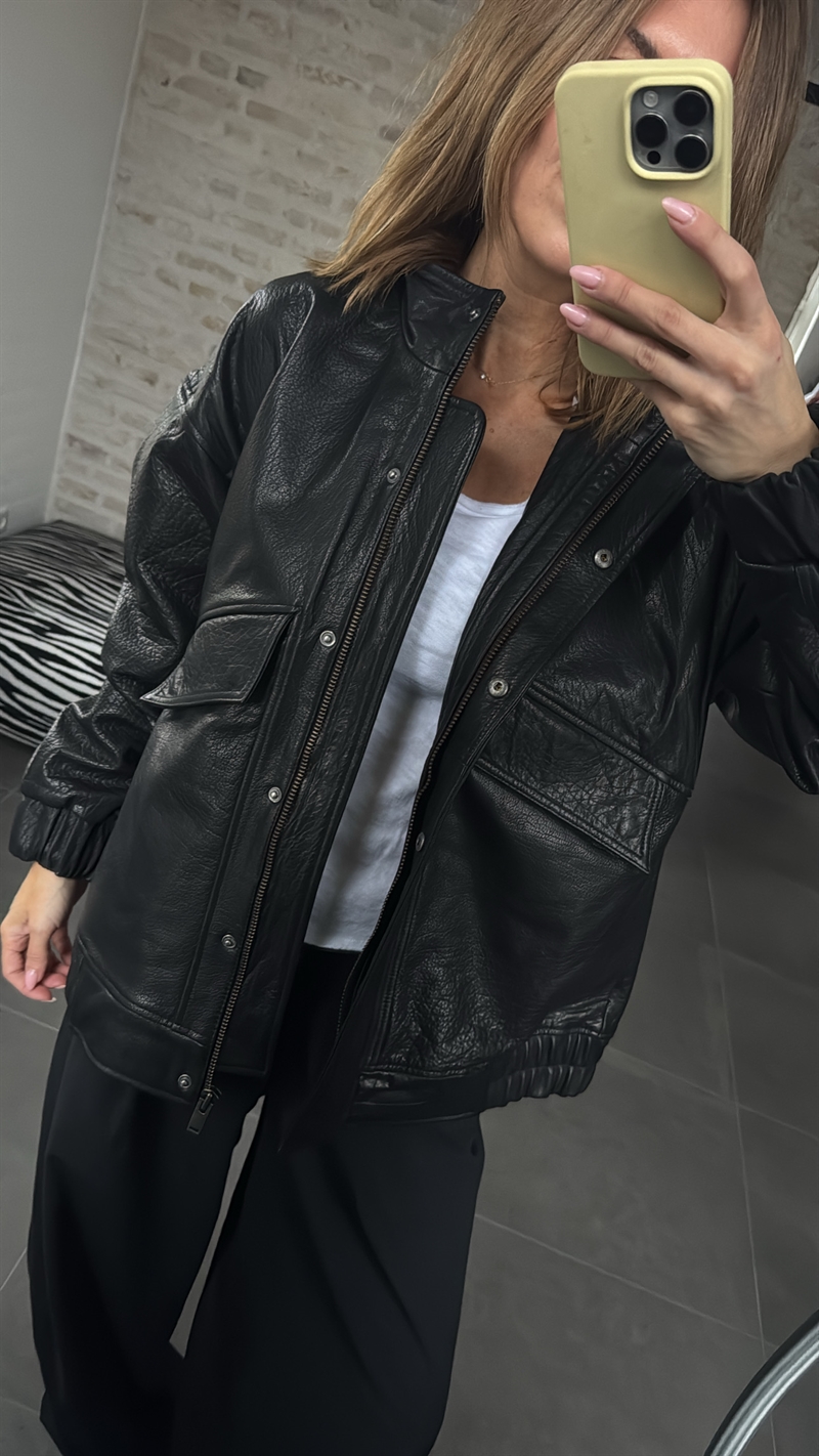 Rouge Edit, Simone Oversized Leather Jacket, Black